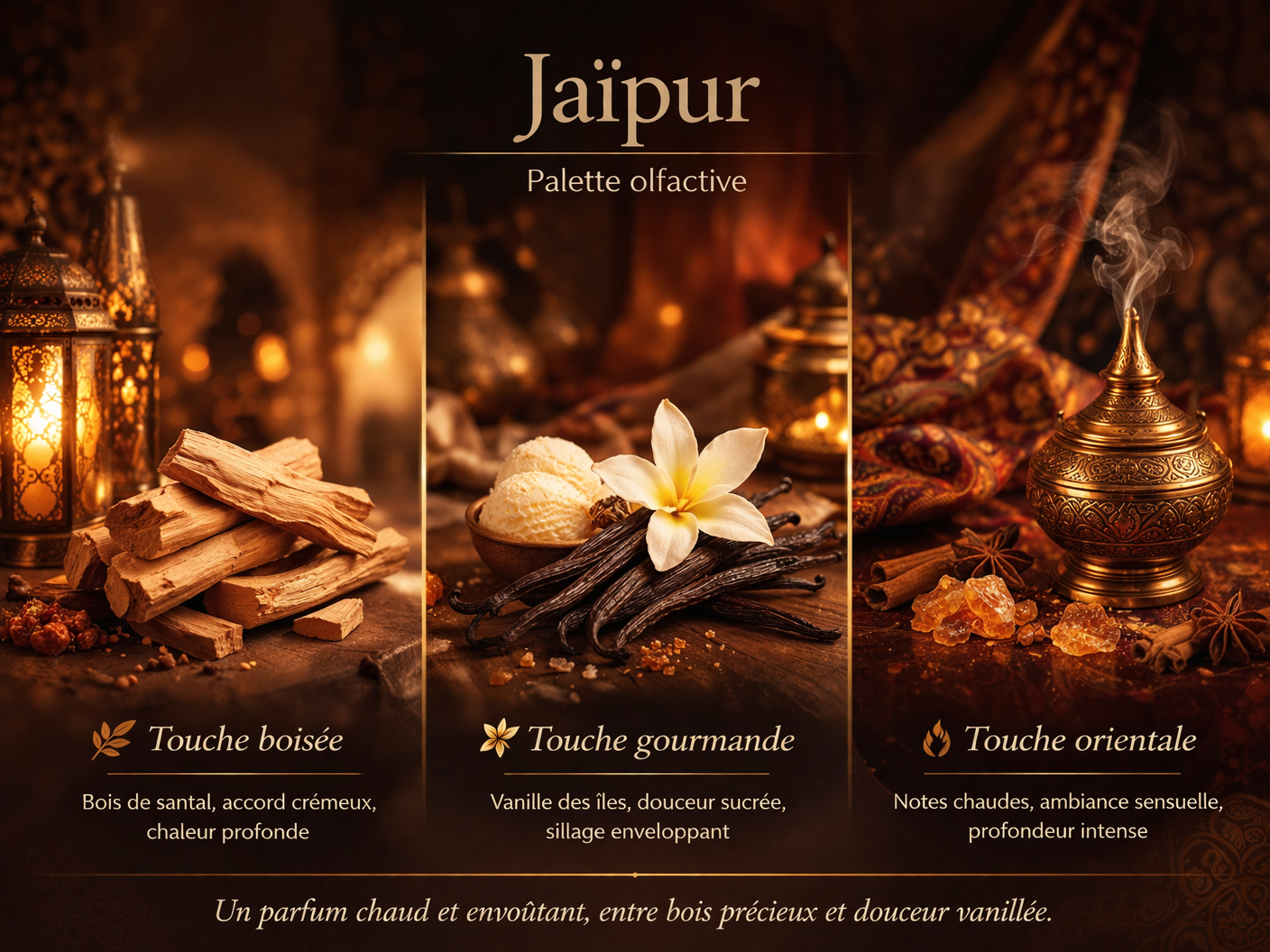 Peu à peu, la peau s’imprègne d’un voile chaud d’ambre, de musc poudré et d’encens léger, rappelant la quiétude d’un temple au crépuscule.